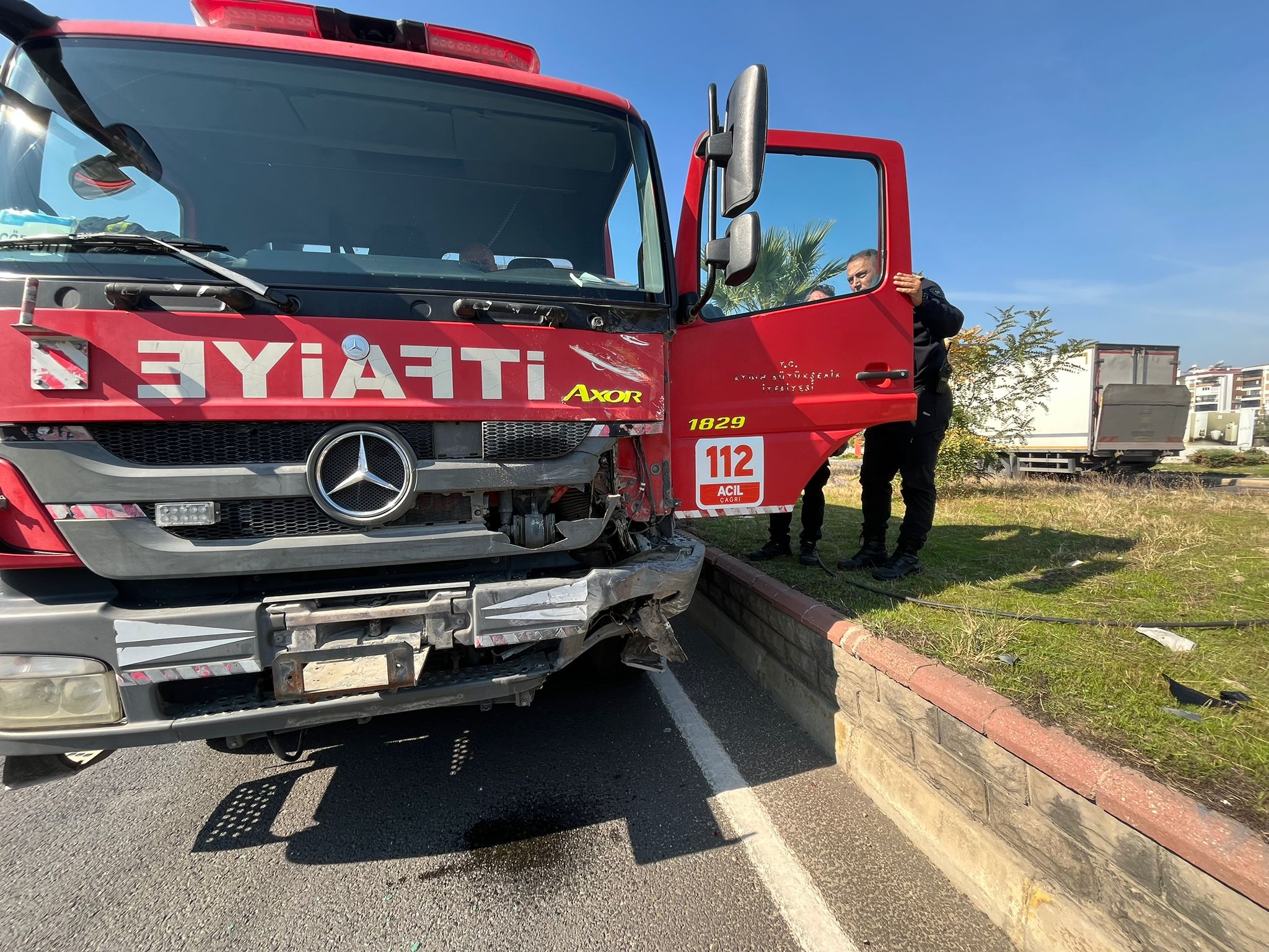 Edinilen bilgiye göre, Arslanlı Mahallesi’ndeki bir fabrikada çıkan yangın ihbarına yanıt vermek üzere yola çıkan U.U. yönetimindeki 09 AB 343 plakalı Aydın Büyükşehir Belediyesi itfaiye kamyonu, kavşakta aynı yönde ilerlemekte olan L.A. idaresindeki resmi araca arkadan çarptı.
