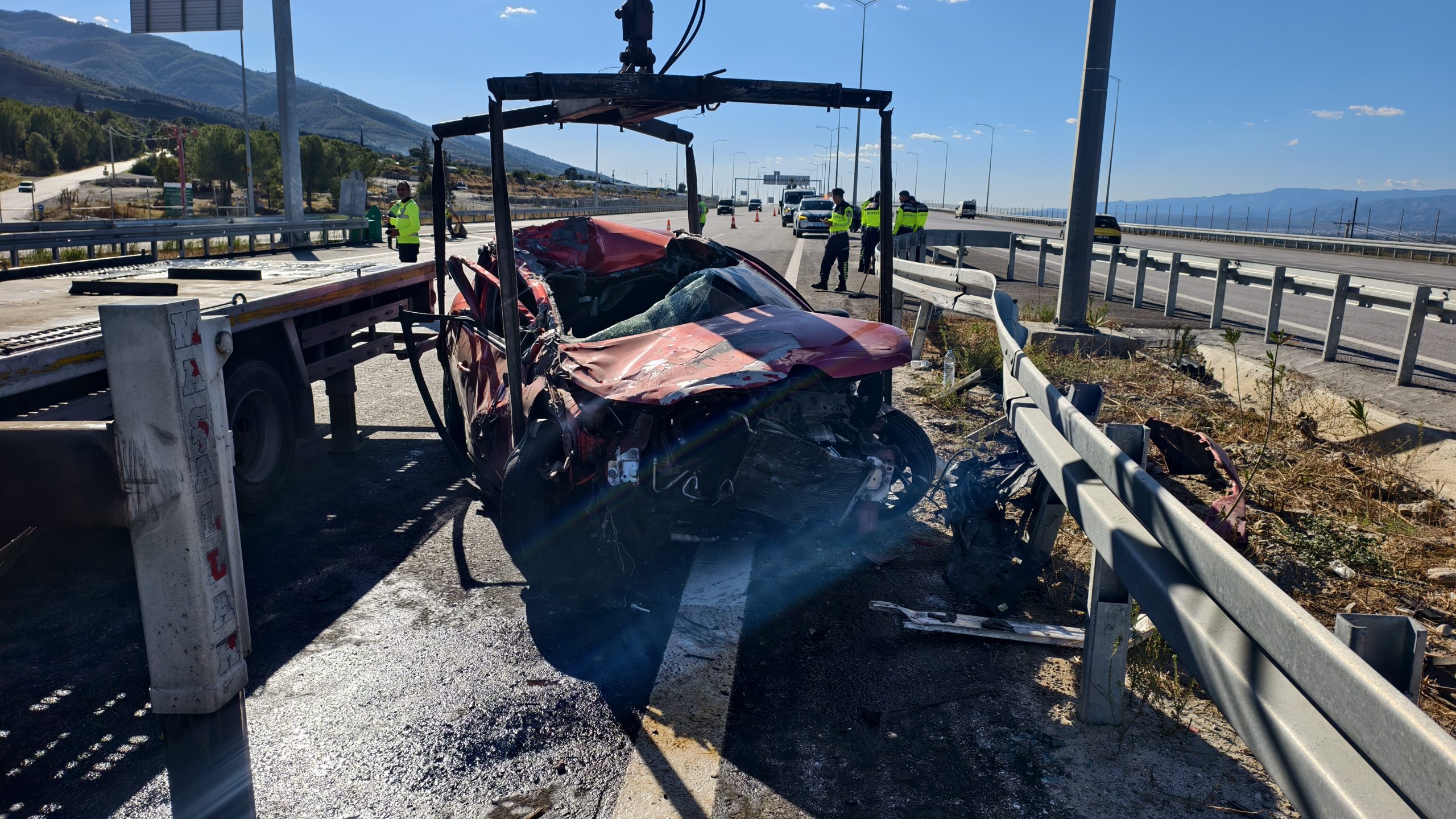 Çarpmanın etkisiyle savrulan otomobil, bariyerlere çarparak durabildi. İhbar üzerine olay yerine sağlık, itfaiye ve jandarma ekipleri sevk edildi.