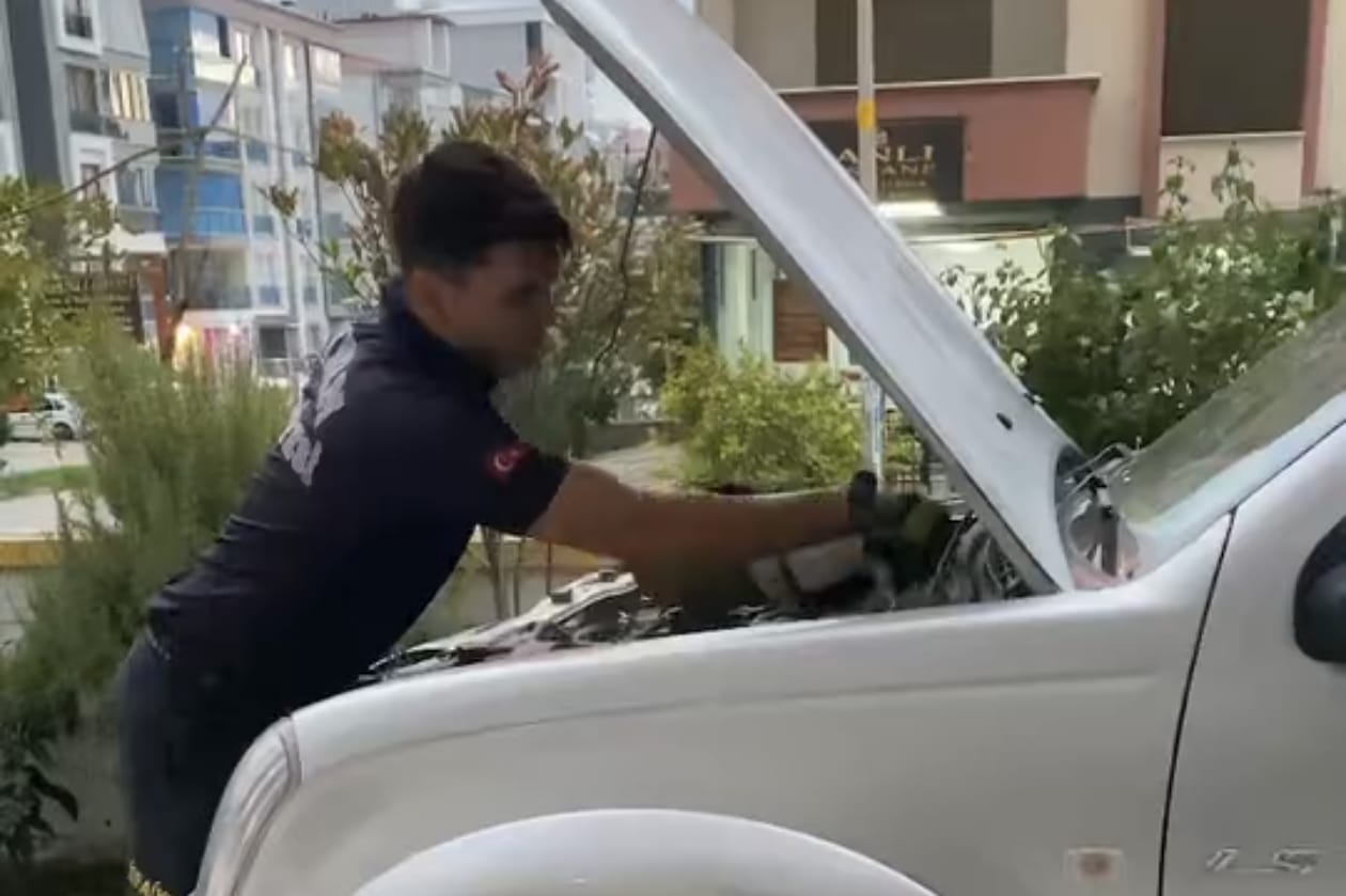 Olay yerine kısa sürede ulaşan itfaiye ekibi, ilk müdahalede kediyi sıkıştığı yerden çıkarmayı başardı. Ancak korkan yavru kedi, tekrar otomobilin motor kısmının derinliklerine girdi.