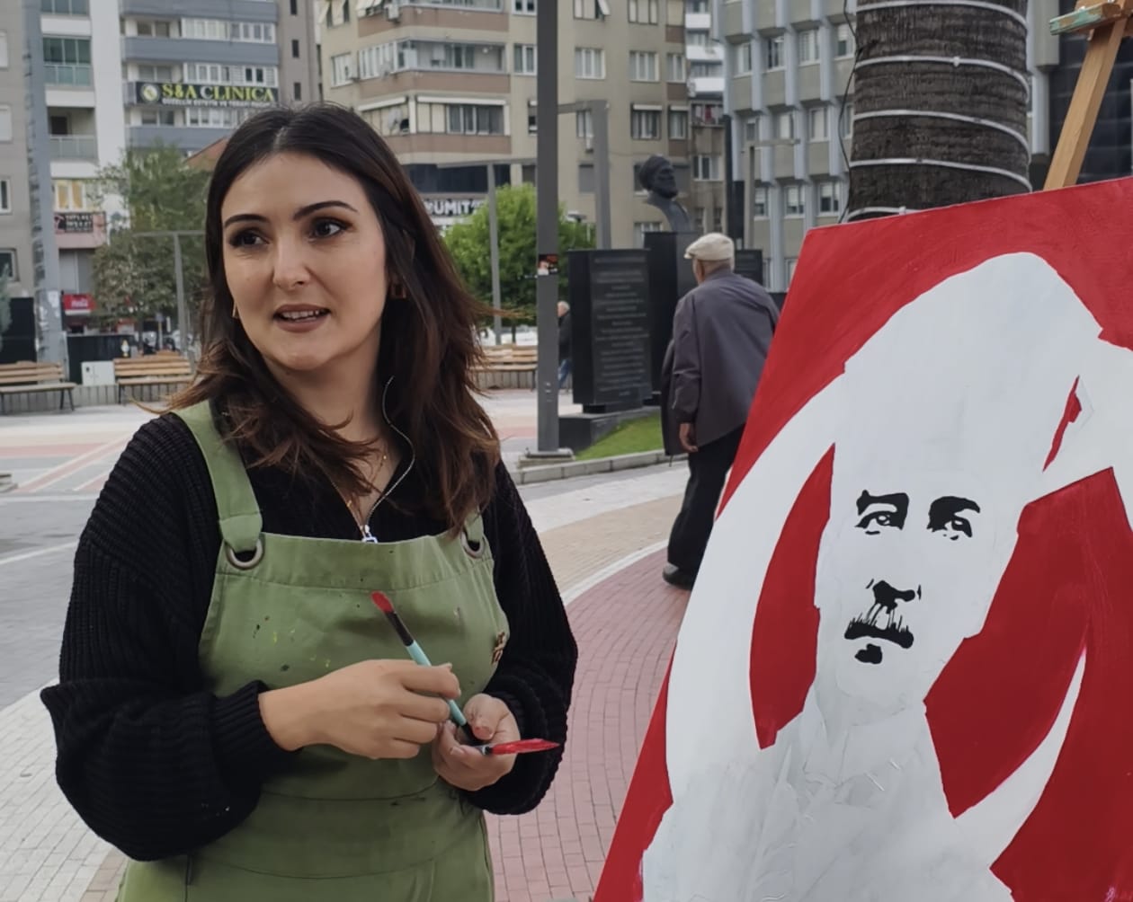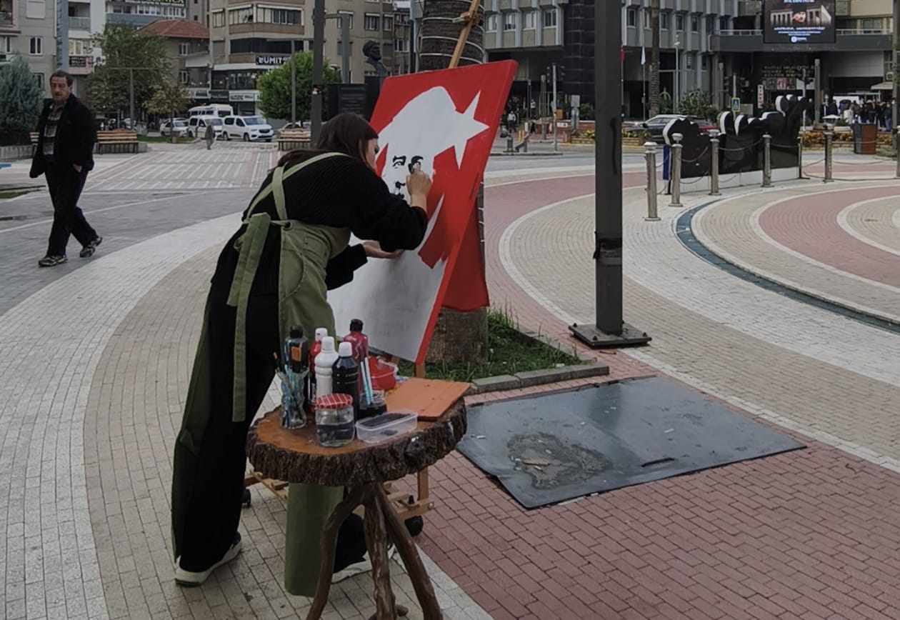 Vatandaşların da büyük ilgiyle izlediği ve beğeniyle karşıladığı Ügü’nün bu çalışması, hem sanata verilen değeri hem de Gazi Mustafa Kemal Atatürk’e duyulan derin saygının anlamlı bir simgesi haline geldi. Cumhuriyet Meydanı, bu sanatsal anma ile 10 Kasım’da farklı bir duygu atmosferine büründü.