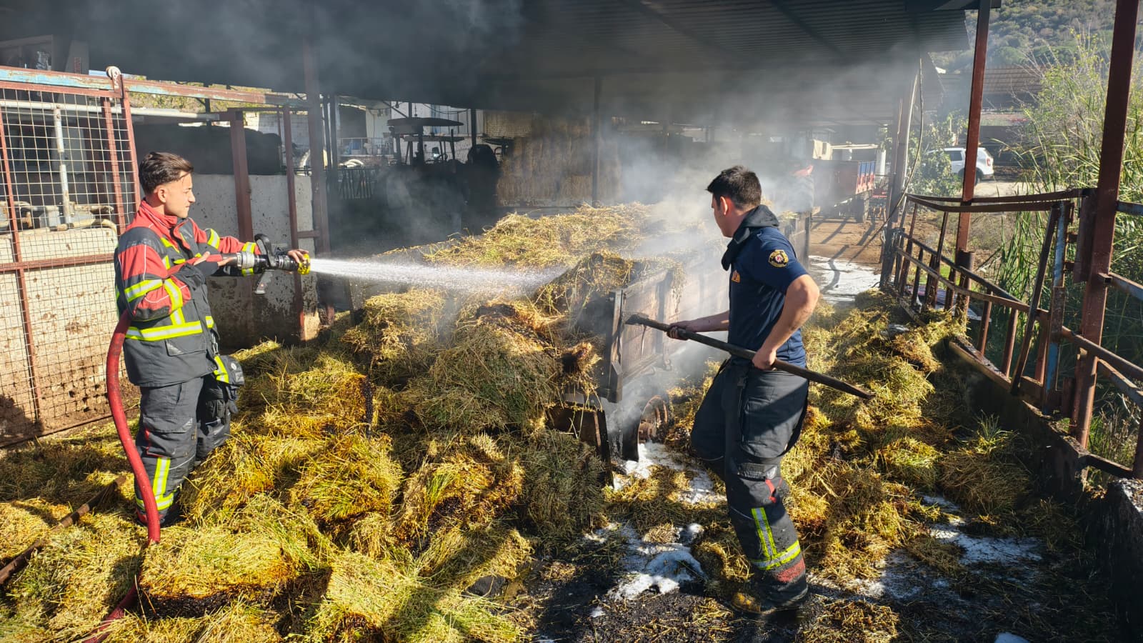 Aydın’ın Nazilli ilçesine bağlı Toygar Mahallesi’nde bugün gündüz saatlerinde çıkan yangında, park halindeki bir traktör ve traktöre bağlı saman yüklü römork alev aldı. İtfaiyenin hızlı müdahalesi sayesinde yangın eve sıçramadan kontrol altına alındı.