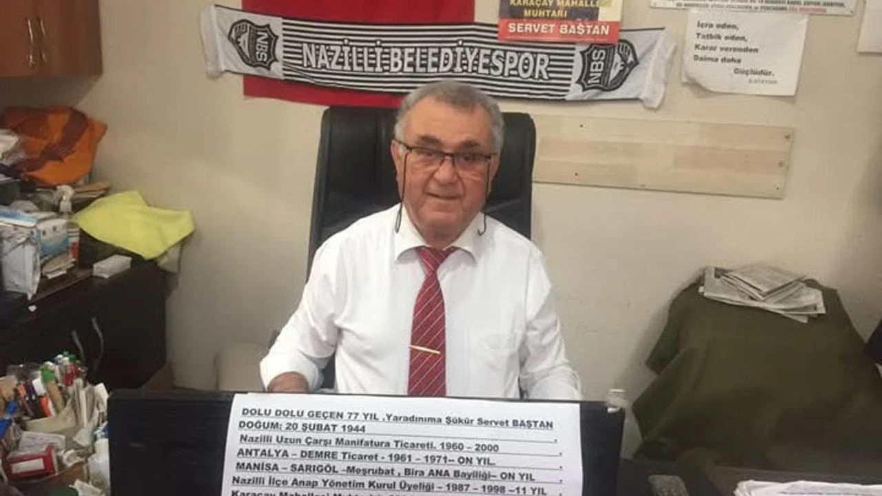 NAZİLLİ – Nazilli’nin sevilen isimlerinden, Karaçay Mahallesi’nde uzun yıllardır muhtarlık görevini yürüten Servet Baştan (81), tedavi gördüğü hastanede hayatını kaybetti. Siyaset ve yerel yönetim dünyasının tecrübeli ismi Baştan’ın vefatı, ilçede derin bir üzüntüye yol açtı.