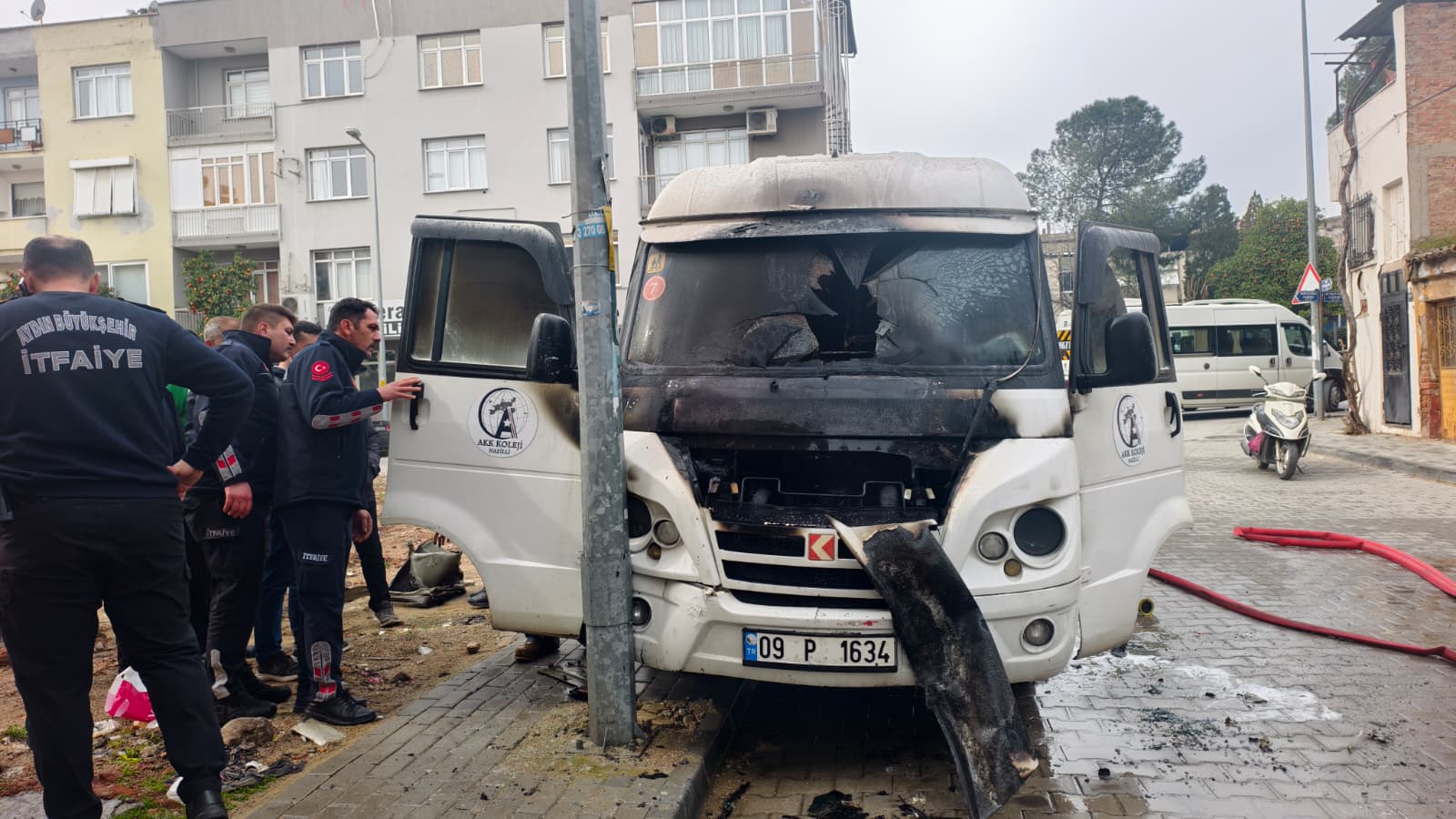Olay, Nazilli Kurtuluş Mahallesi 85 Sokak üzerinde meydana geldi. Edinilen bilgiye göre, A.B.’ye ait olduğu öğrenilen 09 P 1634 plakalı servis minibüsü, park halindeyken henüz belirlenemeyen bir nedenle motor kısmından alev aldı. Kısa sürede büyüyen yangın tüm aracı sardı.