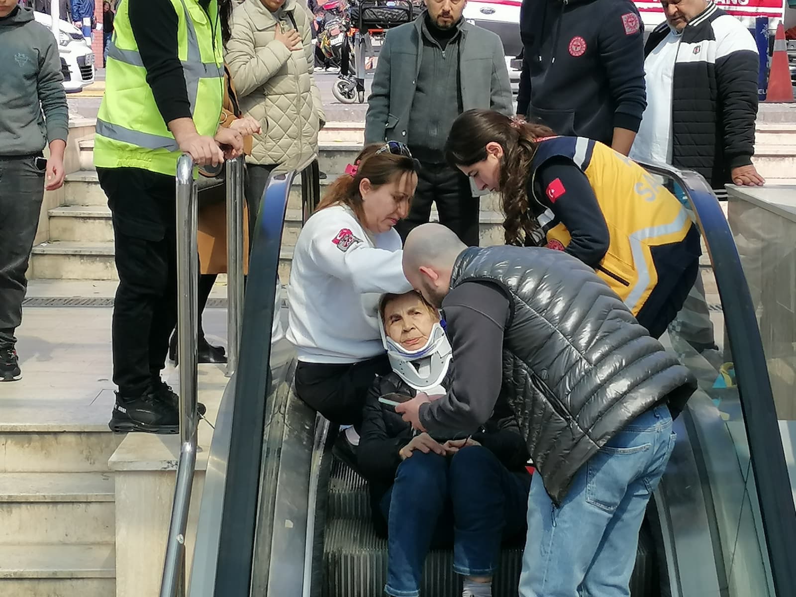 Dengesini yitirmesi sonucu hareket halindeki merdivenlerden aşağı doğru yuvarlanan talihsiz kadın, başını basamaklara çarparak yaralandı. Olayı gören çevredeki vatandaşlar hemen yardıma koşarken, durumu 112 Acil Çağrı Merkezi’ne bildirdi.