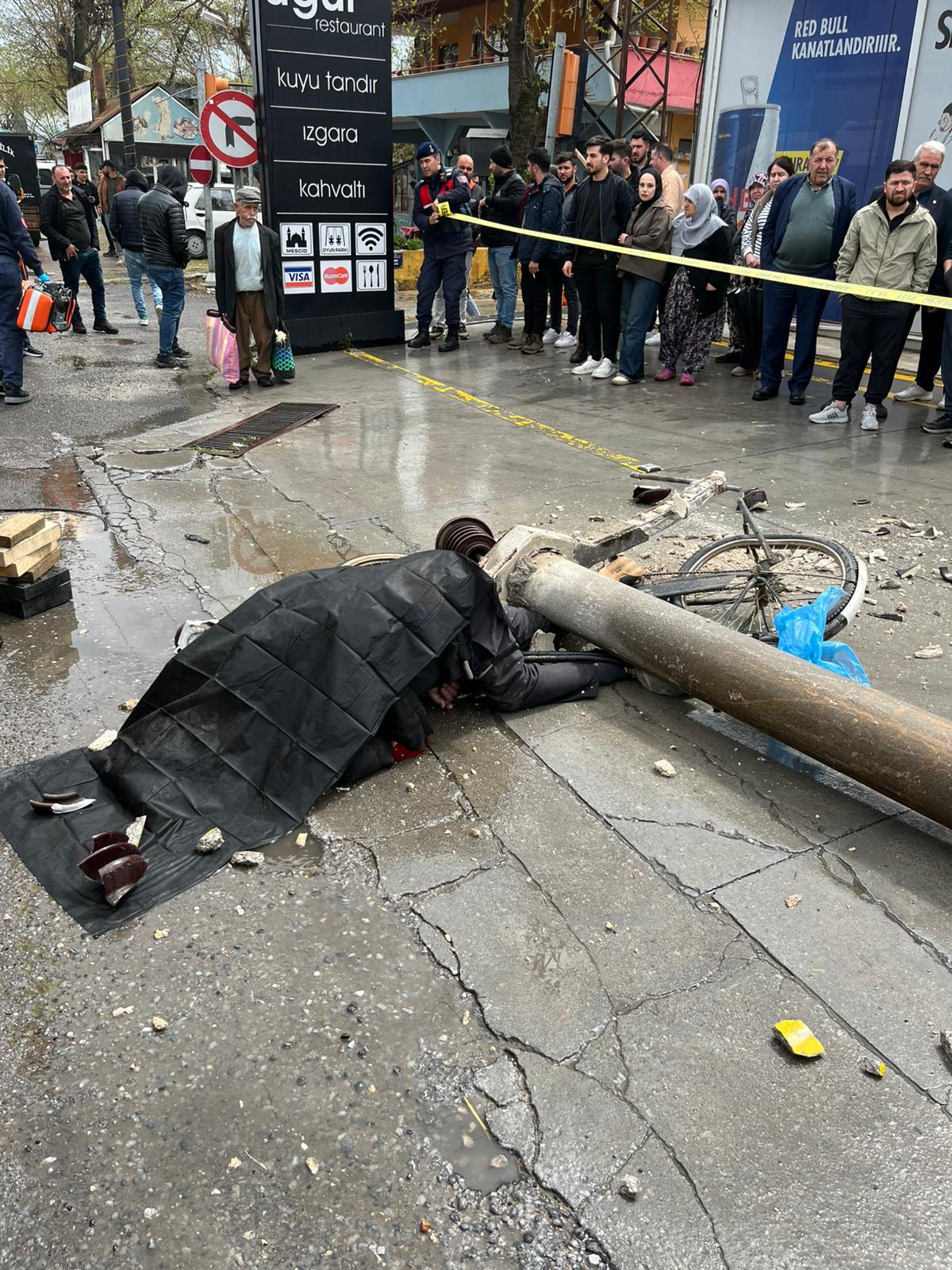 O esnada kavşak yakınında bisikletiyle seyir halinde olan Niyazi Şen, üzerine doğru devrilen devasa direkten kaçamadı. Elektrik direğinin altında kalan Şen, ağır yaralandı. Kazayı görenlerin ihbarı üzerine bölgeye acil olarak sağlık, itfaiye ve polis ekipleri sevk edildi.