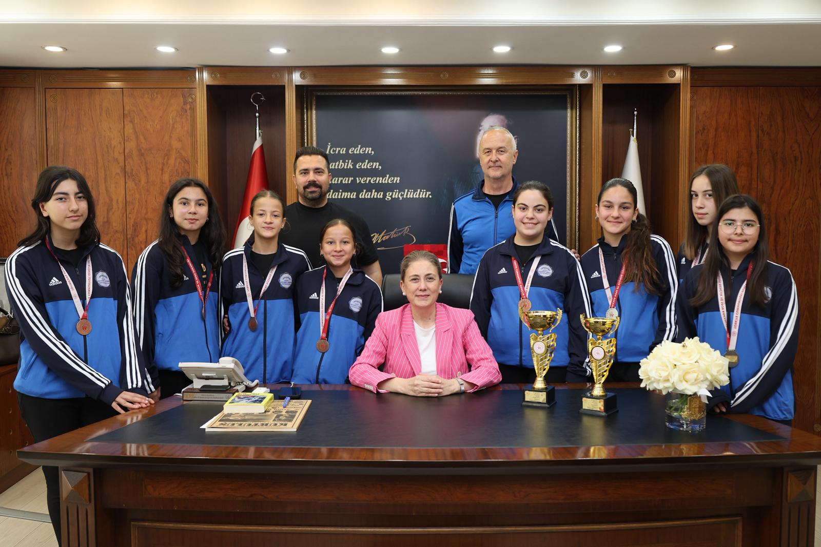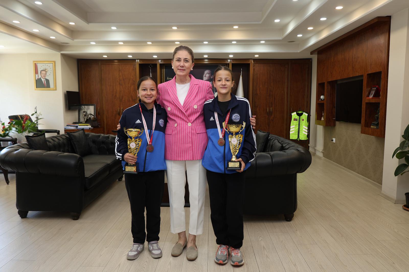 Antalya’da düzenlenen Okul Sporları Triatlon Türkiye Finalleri’nde büyük bir başarıya imza atan Nazilli Şehit Mehmet Dinek Ortaokulu öğrencileri, ilçeye gururla döndü. Türkiye derecesi elde eden başarılı sporcular, Nazilli Kaymakamı Huriye Küpeli Kan’ı makamında ziyaret etti.