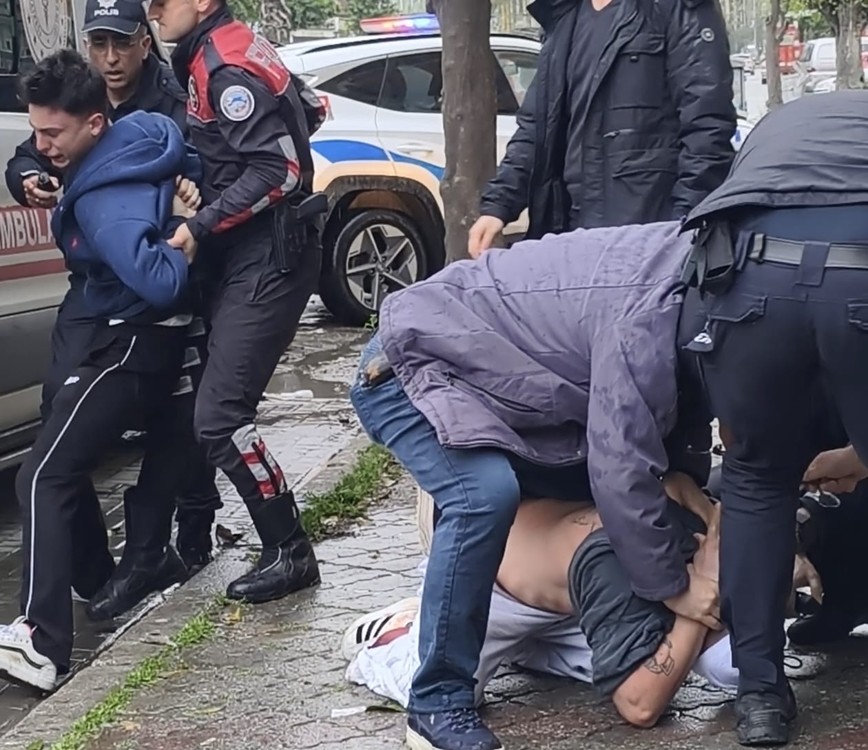 Şahsın saldırgan tavırlarını sürdürmesi üzerine polis ekipleri müdahale kararı aldı. Biber gazı kullanan ekipler, E.Ş.’yi ve arkadaşının gözaltına alınmasına engel olmaya çalışan A.K.’yi yere yatırarak kelepçeledi.